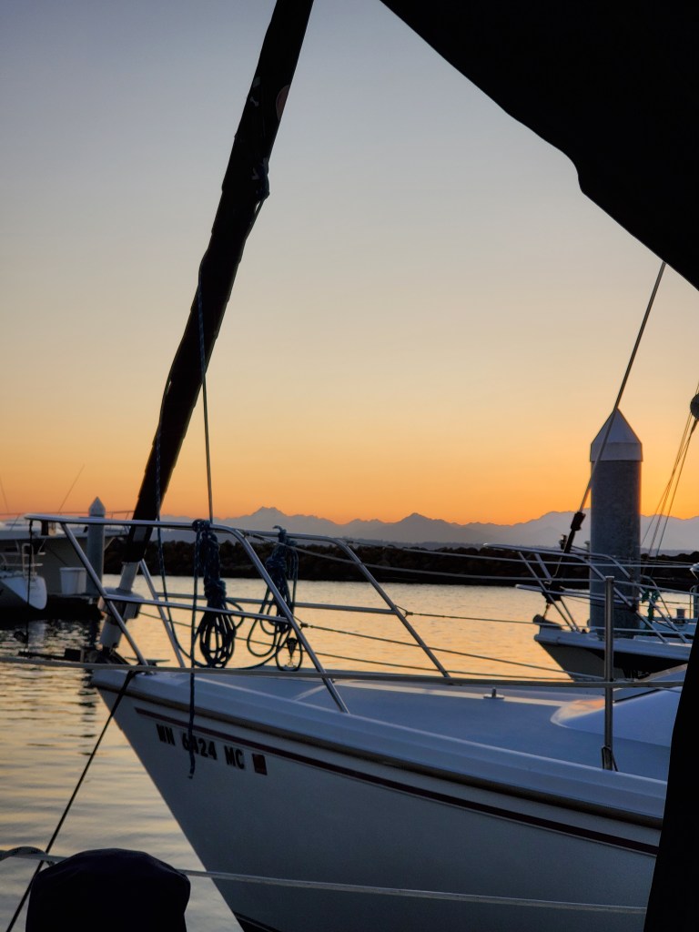 We’ve walked the length of the marina and back again many times now. We look at the big yachts visiting and see other marina tenants out walking. We’ve seen the full spectrum of sunsets and a few spectacular sunrises as well.