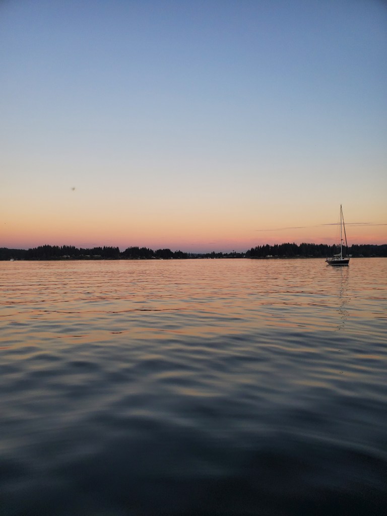 Spending most of the past year in this smaller orbit, Andrew and I have also observed the birds migrating, the snow melt and return to the Olympic mountains and the sun shift south as it sets earlier and earlier. We’ve seen the king tides, watched playful seals and porpoises, glided among moon jellyfish in late summer and noticed the water quality change when there’s yet another sewage spill. Yuck.