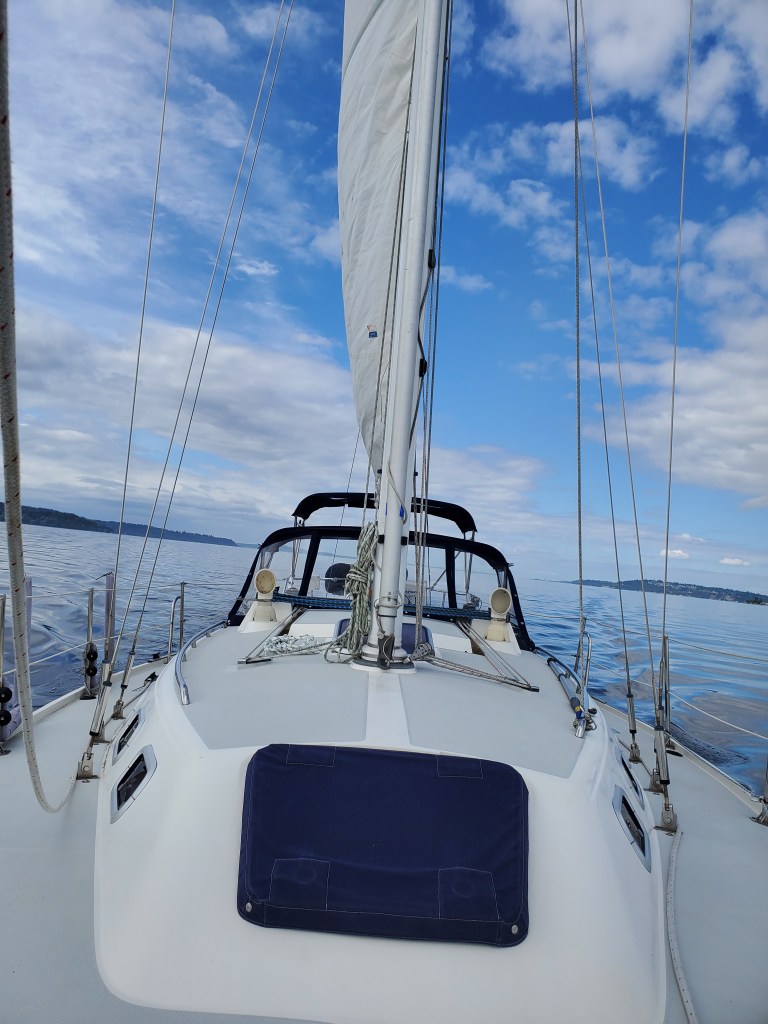 Andrew and I both have an ever-growing list of what we want to know about including the diesel inboard engine, splicing, the best way to sail a Catalina 34 downwind, new anchorages, battery efficiency and more.