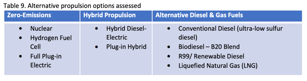 After conducting an in-depth propulsion analysis with industry stakeholders, the recommended vessel was selected over zero-emission or alternative fuel options. The process considered the propulsion required for the routes, electrical infrastructure, emerging vs. established technologies and the plug-in hybrid’s potential to be converted in the future. The report adds: “it is a goal that the hybrid system would be convertible to zero emissions operations within the next ten years.“