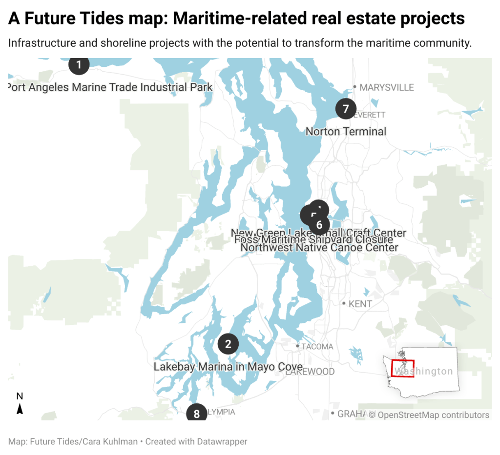 There are more projects underway, help me learn about them. Contribute to this map by contacting me at cara@futuretides.org about any major maritime-related projects in Washington state that you hear about. Including the project partners, website links, press release, news articles or a project contact are all helpful.